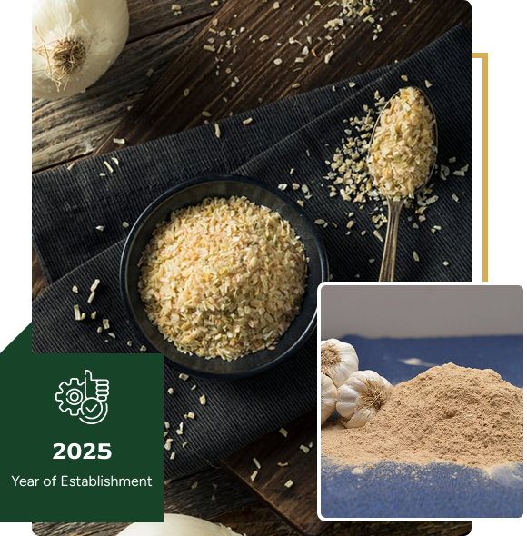 We supply Dehydrated Garlic Cloves, Dehydrated Garlic Chopped, Dehydrated Garlic Minced as well as Dehydrated White Onion Minced, Dehydrated White Onion Granules, Dehydrated White Onion Powder, etc.